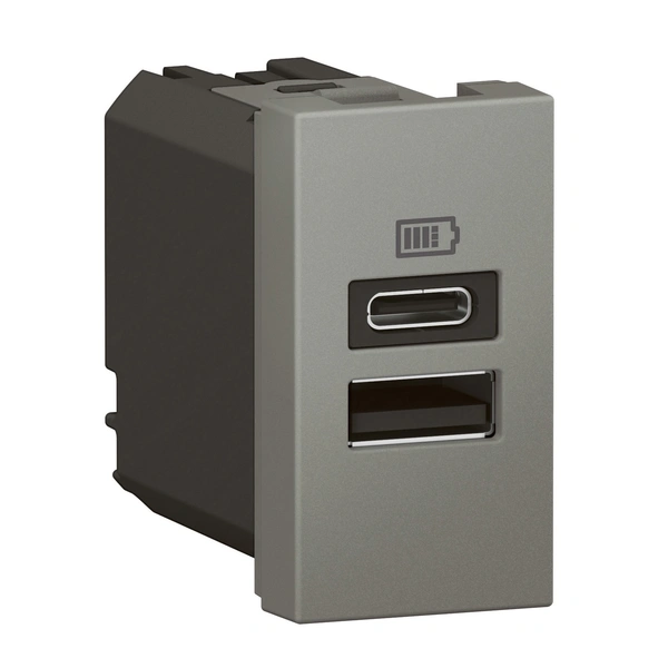 Legrand Arteor USB Charger - 3000mA/15 Watts - Type A + C - 1M - Magnesium