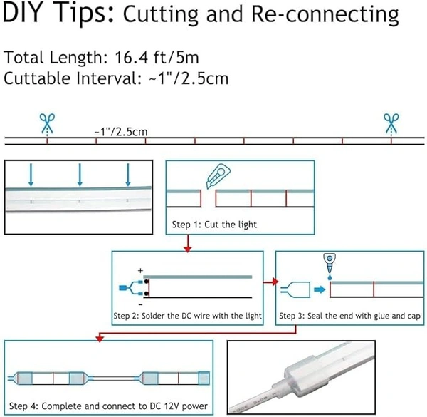 LED Neon Flex, 16.4ft/5m Neon Light Strip,12V Flexible Waterproof Neon LED Strip,Silicone LED Neon Rope Light for Kitchen Bedroom Indoor Outdoor Decoration(Power adapter included)