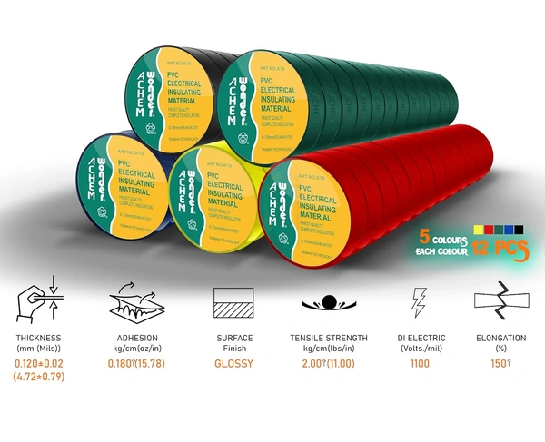 - PVC (polyvinyl chloride) Electrical Insulation Tape, for electrical insulation under 600V / wire wrapping, winding wires and cables, electrical installation, maintenance and manufacturing engineering